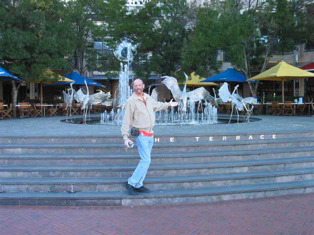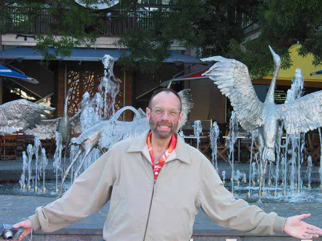 Sunday, 6 April 2003 - (42 KB) Tom with a water sculpture |