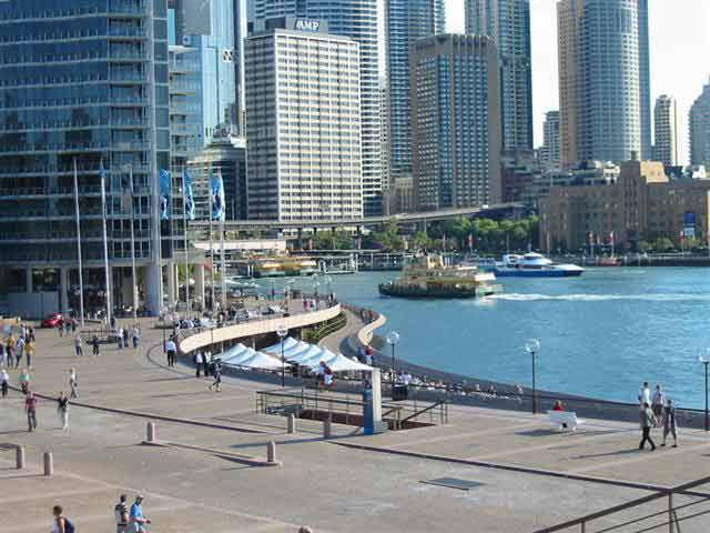 Monday, 7 April 2003 - (35 KB) View of the Circular Quay from the steps of the Sydney Opera House |