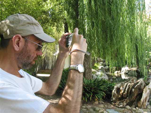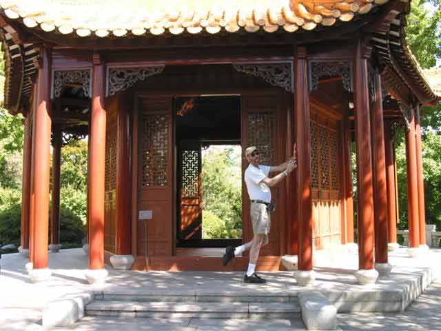 Monday, 7 April 2003 - (35 KB) Tom outside the Chinese Friendship Garden |