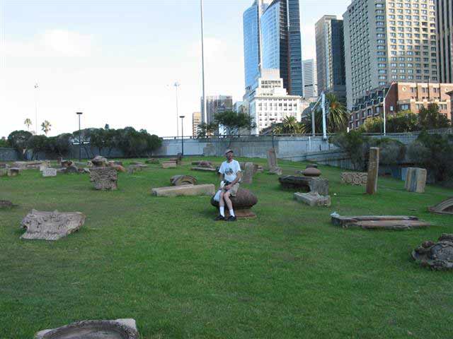 Monday, 7 April 2003 - (35 KB) This "sculpture" wasn't here in ’95 when we were last in the Royal Botanic Garden. It's old cornerstones and the like from buildings that no longer are |