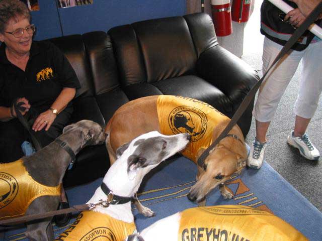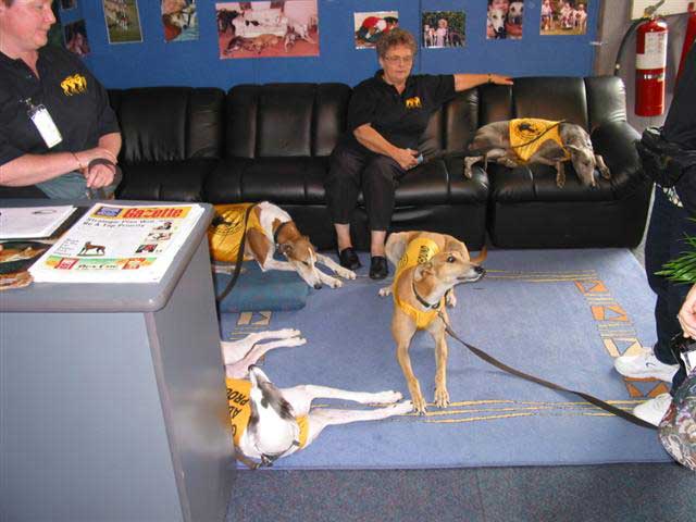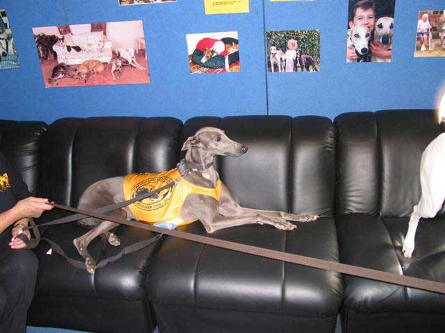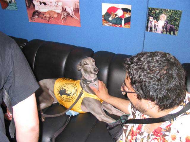 The Greyhound Adoption Programme of New South Wales (GAP for short) has a booth here for the duration of the show. We dedicate this page to the dogs whose ears we scritched today: to Josh, to Lilly, to Amber, to Nikki, to Katie, to Pipi, and to Sam the poodle. We also dedicate this to the wonderful volunteers of GAP of NSW who allowed us to get to meet their dogs. |