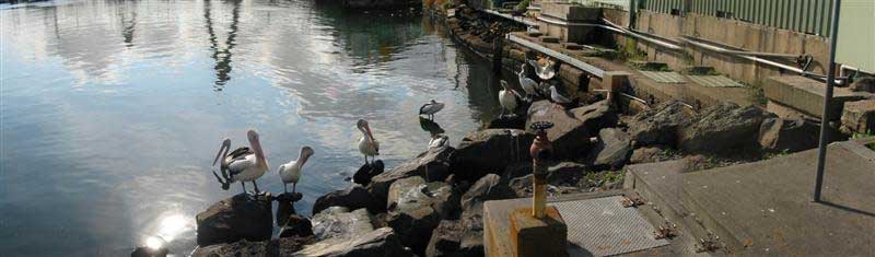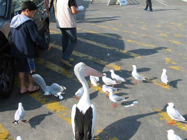 Saturday, 12 April 2003 - (30 KB) Tom's just fascinated with the pelicans at the Sydney Fish Market |